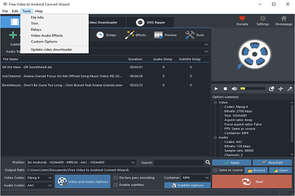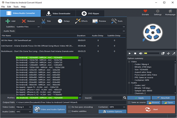 Download Free Video to Android Convert Wizard for Free! To install and use of Free Video to Android Convert Wizard will be no harder than downloading it – anyone can achieve their goals without painful learning. 100% free and no strings attached, guaranteed. Start your happy experience with a single click here!