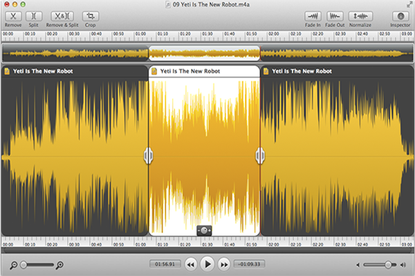 Fission is a Mac audio editor which is capable of splitting, trimming and joining files. It is possible to get audio files in several formats merged into a single one.