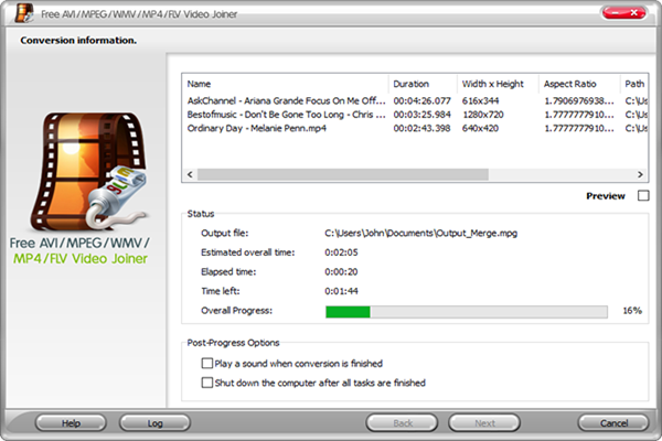 After you hit “Join Now”, some joining information and a progress bar will be displayed within just few seconds. Select the post-process options to automatically play the sound or shut down the computer after the joining is finished.